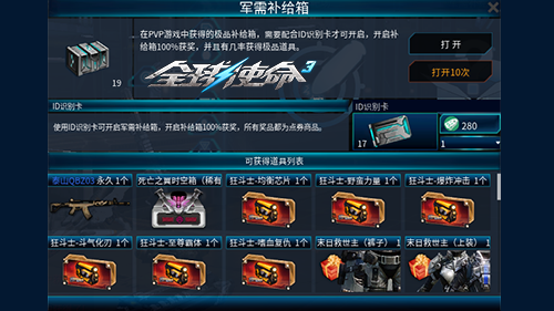 随全视角第三人称 PVE 射击网游《全球使命 3》全新版本 “战神凤凰””的震撼上线,备受玩家关注的“军需补给箱奖池”已迎来一波更新!只需参与一局 PVP 战斗,就有机会获得包含强力武器、实用机友以及各类装置的军需补给箱。接下来,就让小编为大家详细介绍新版本中补给箱里的限时道具吧。