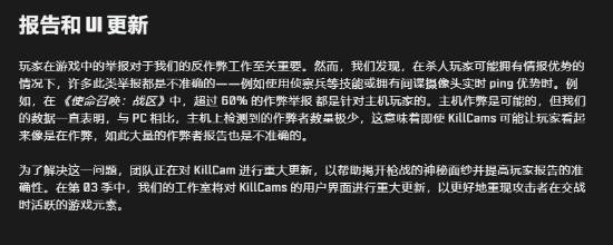 Ricochet在报告中写到,“《使命召唤:战区》收到的作弊举报中,超过 60% 是针对主机玩家的——主机作弊是可能的,但我们的数据一直表明,与PC相比,主机检测到的作弊者数量极少,这意味着很多死亡回放只是看起来像是在作弊,如此大量的作弊举报也是不准确的。”