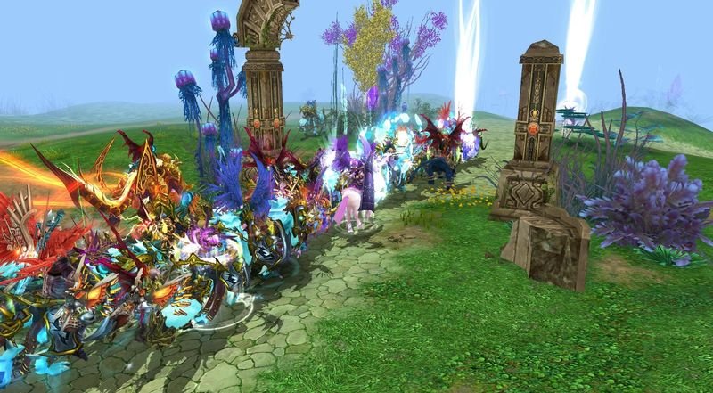 一旦进入密闭的血战空间,玩家将会拥有同种外形,不分彼此,进行匿名厮杀,通过杀死其他玩家获得积分,再根据积分排名发放各种BT奖励。其中,争夺战场上的旗帜与水晶可以提高玩家的能力和积分。若玩家死亡将可拥有怒气值,释放怒气技能,增加更多战斗乐趣。