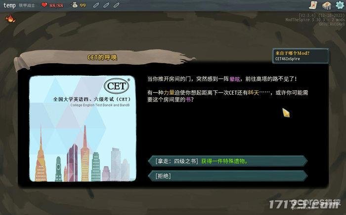 《杀戮尖塔》作为卡片肉鸽的开创者,热度一直居高不下,各种MOD也是百花齐放。近日,玩家“__name__”在Steam创意工坊上传了MOD“别忘了四六级(CET46 In Spire)”,引发社区大量讨论,登上《杀戮尖塔》创意工坊热门榜榜首。