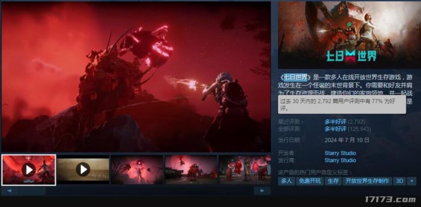 其实游戏在去年的7月就率先登录了steam,因为游戏是罕见的新怪谈风格,加上高自由度的开放世界以及不卖数值的操作,因此游戏的人气不错,目前游戏最高同时在线人数高达21万,游戏口碑“多半好评”,好评率77%。