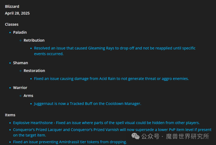 魔兽世界:暴雪蓝贴:4月29日在线热修!