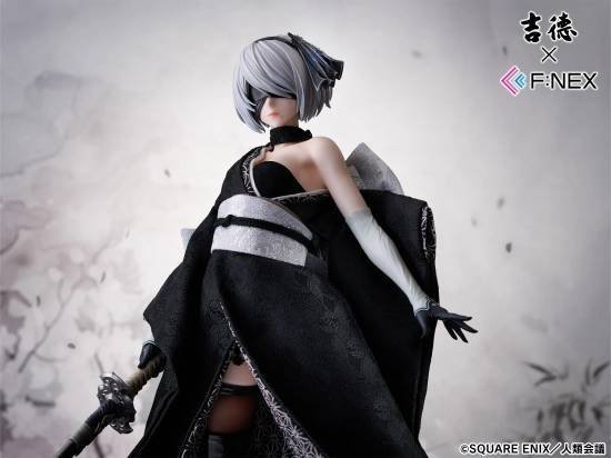 据悉,这款人形娃娃含底座高度约为43厘米,黑色的连衣裙被设计为类似襦袢(日本传统内衣)的风格,从靴子的光泽到手套的褶皱等细节都经过精心雕琢,堪称精品。整体以黑色为主色调,展现出冷酷而美丽的姿态,同时通过飘扬的裙摆和袖口的动态设计,既表现出力量感,又升华成了优雅的和服造型,让人充分感受到2B的魅力。
