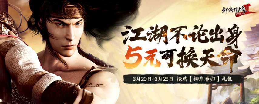 西山居经典剑侠情缘系列游戏——《剑网2》二十周年开年资料片即将发布,新服【柳岸春归】预购活动抢先开启!抢购新服5元畅游礼包,即得东皇凤鸣武器、月卡、坐骑、真卷、仗剑令等超值好礼!还有10元直升99礼包,50元熔炼大礼包,准备入驻新服的大侠别错过了!